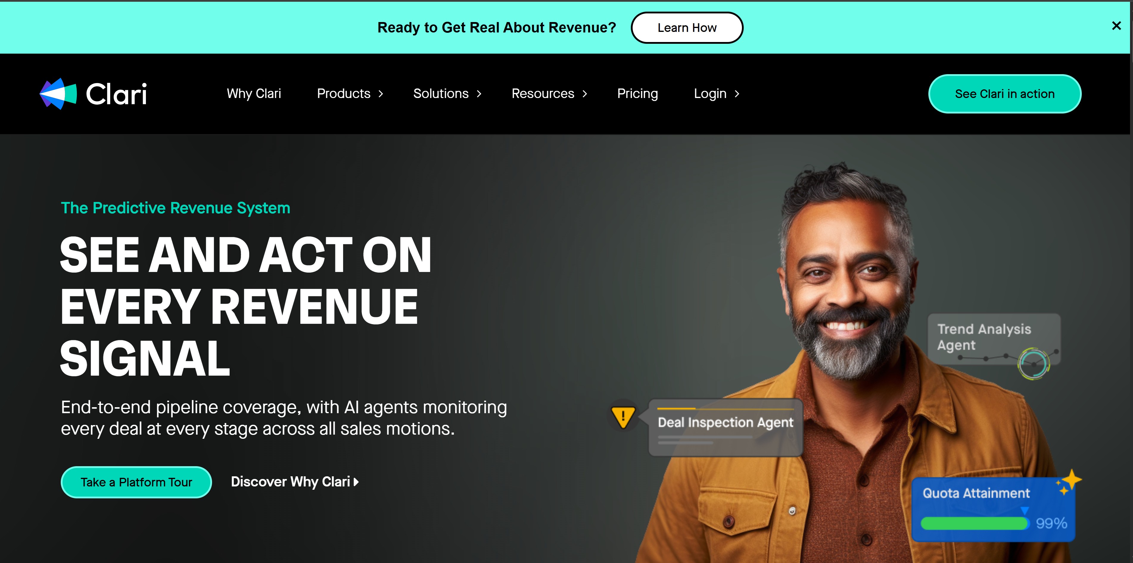 Clari addresses that problem by organizing revenue signals into a unified operating system for execution.