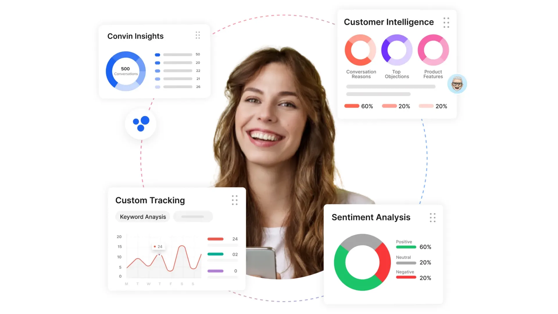 Convin delivers full-funnel call analytics, sentiment scoring, performance benchmarking, and feedback automation, without enterprise pricing.