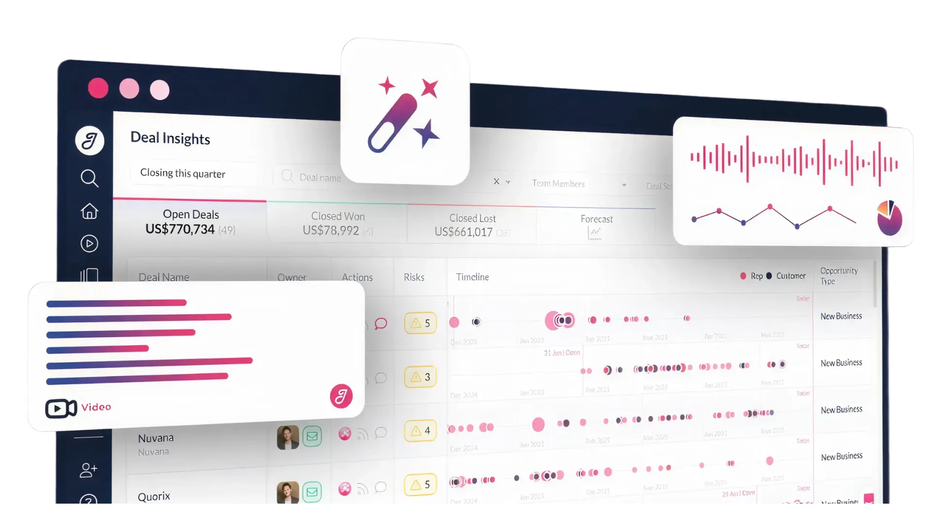 Still the gold standard for data-rich orgs. Gong captures every customer interaction (calls, emails, meetings) and turns it into deal intelligence.