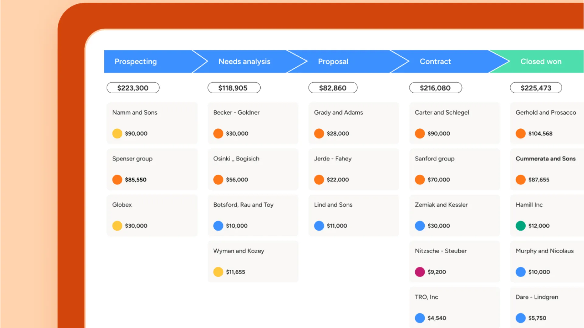 Create sales reports that focus on metrics most relevant to your pipeline. - Visualization Variety