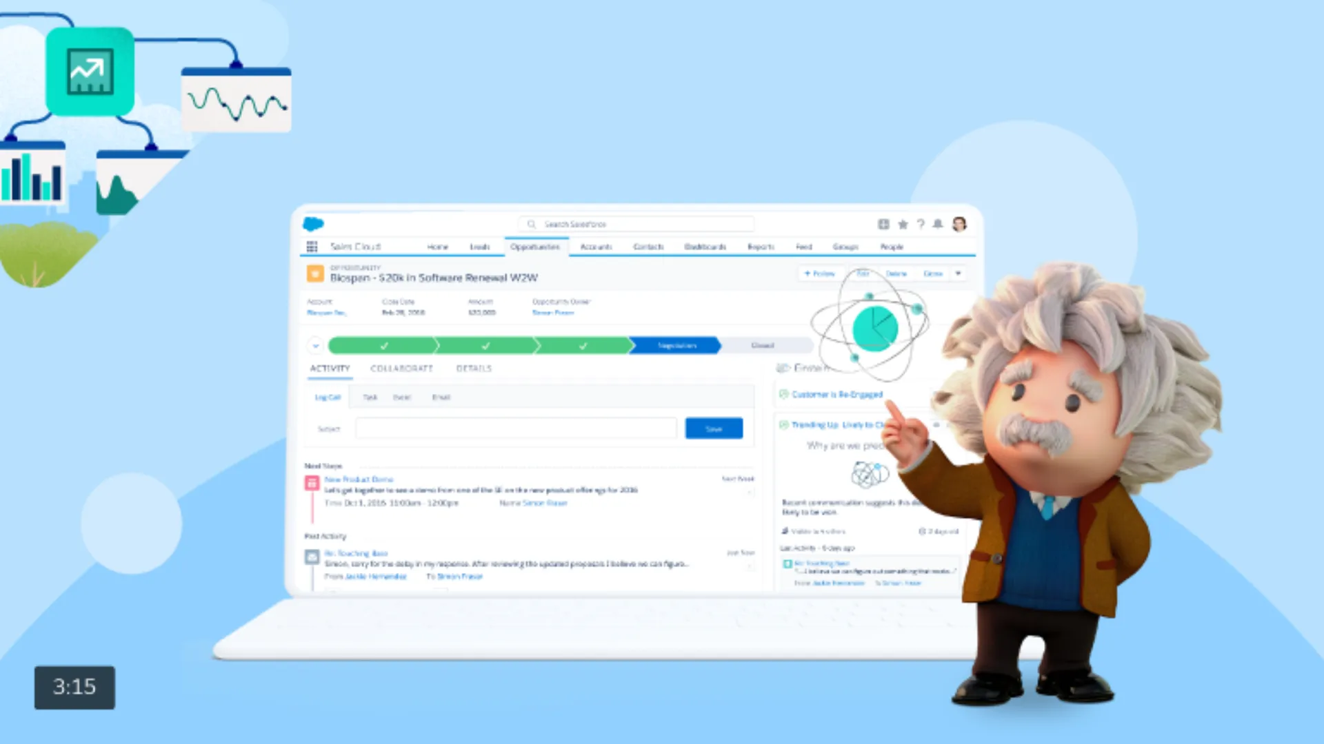 Einstein suggests next steps, such as follow-up timing or which deals to prioritize, based on call data and CRM context.