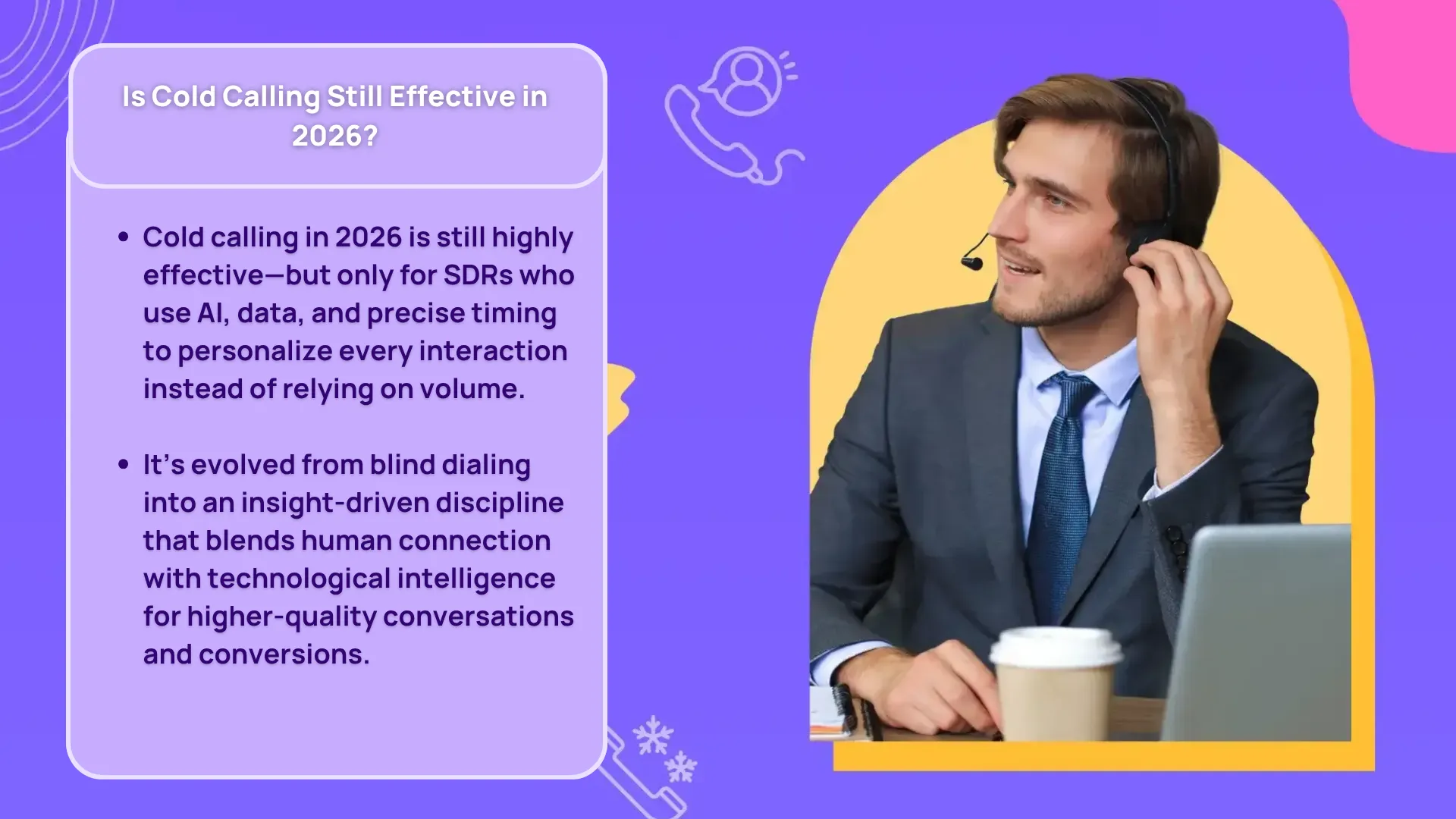 In 2026, cold calling is no longer about sheer dial volume; it’s about strategic timing, data precision, and AI-augmented messaging. The best SDRs blend automation with human intuition, using AI to prepare and personalize, not to replace conversation.