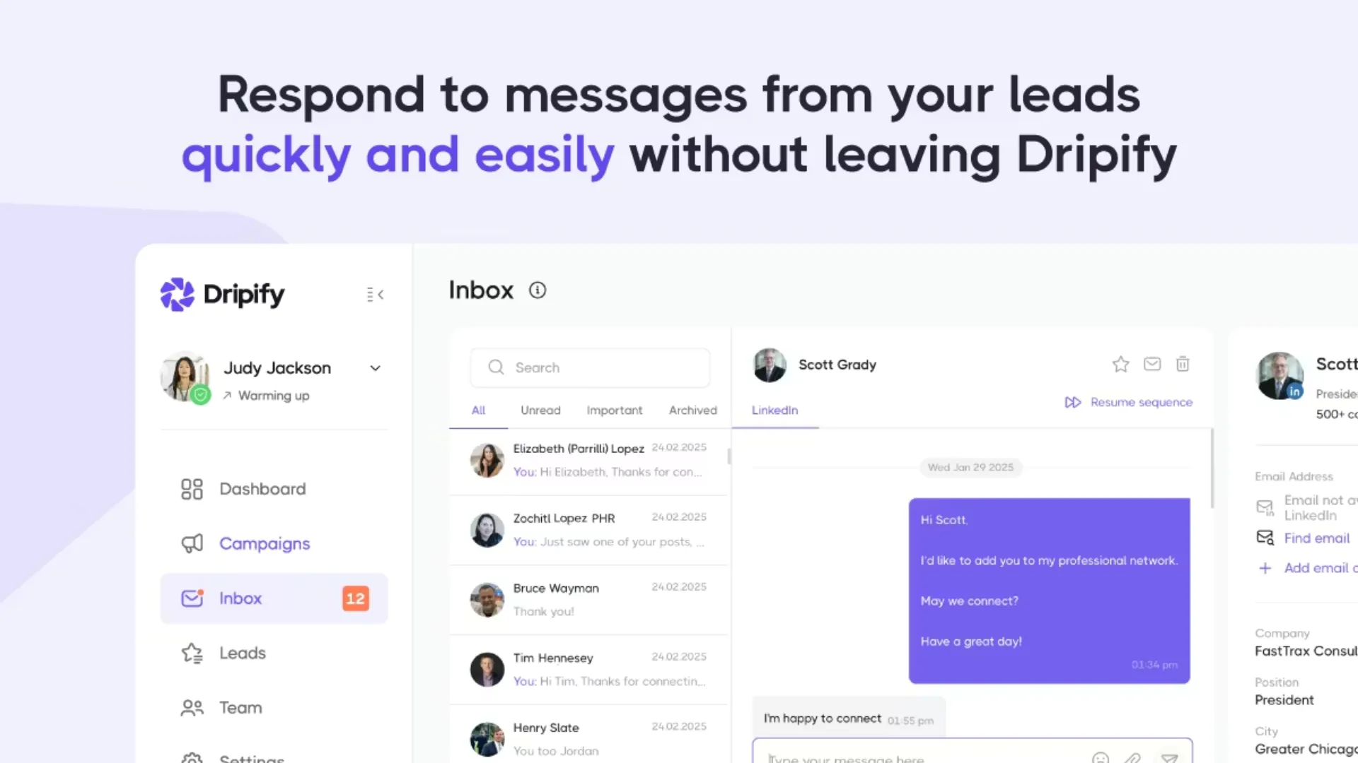 Dripify is particularly strong when it comes to visibility and control across teams.