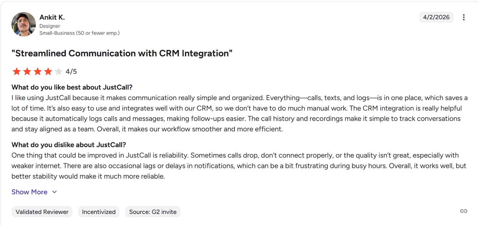 JustCall blends sales and support into one system, which is useful for teams managing multiple touchpoints.