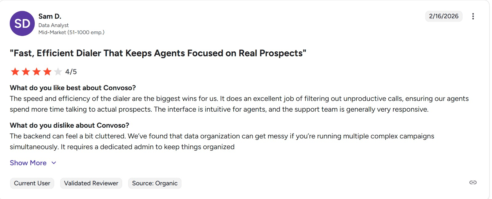 For call centers looking for a high-volume outbound solution, Convoso positions itself as a strong option for improving connection rates and driving better campaign performance.