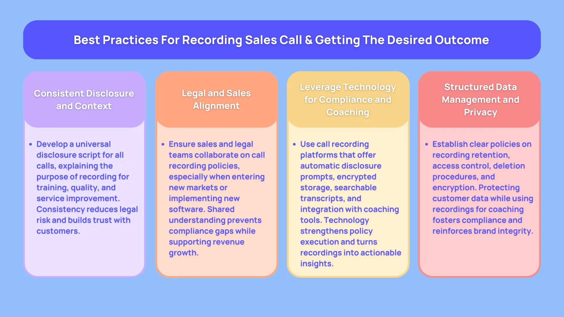 Bringing everything together, here is a consolidated framework for sales call recording best practices that balances performance with protection.